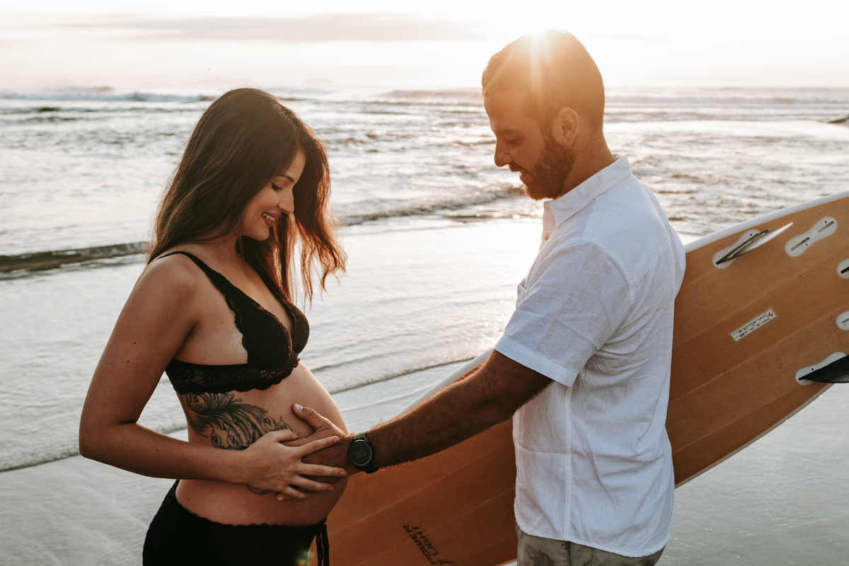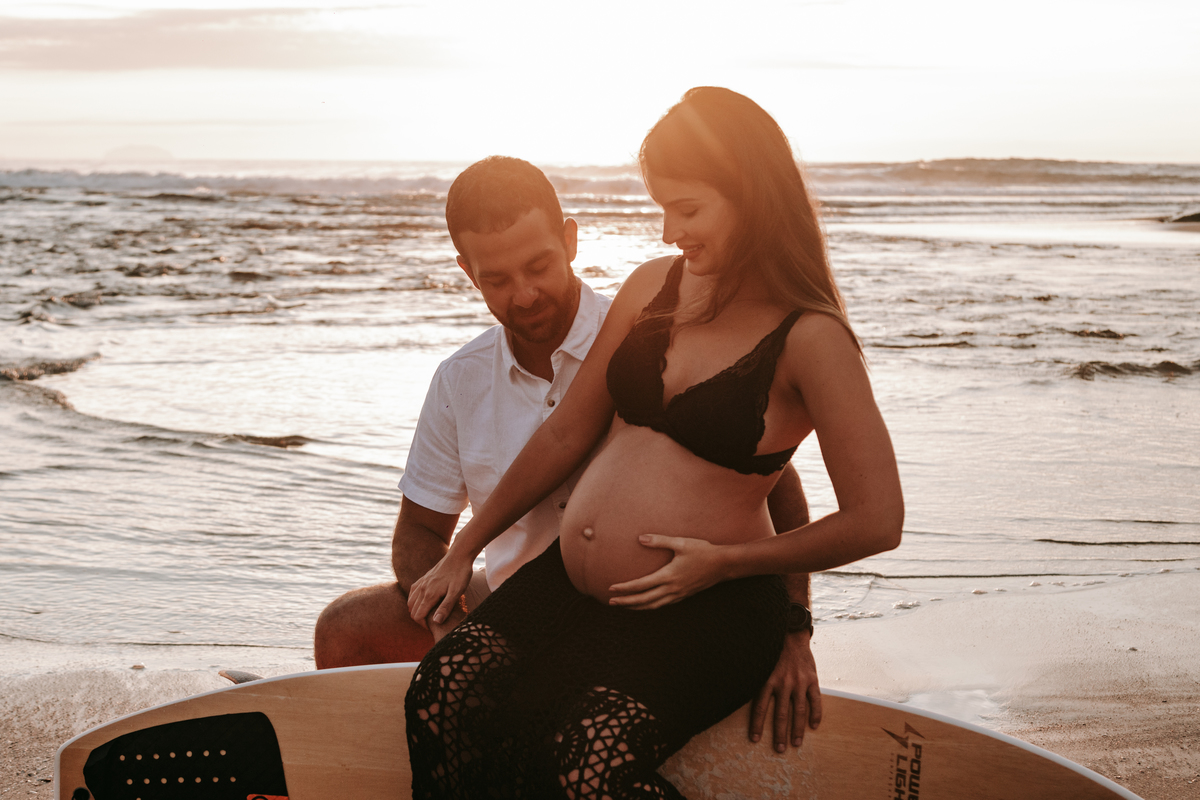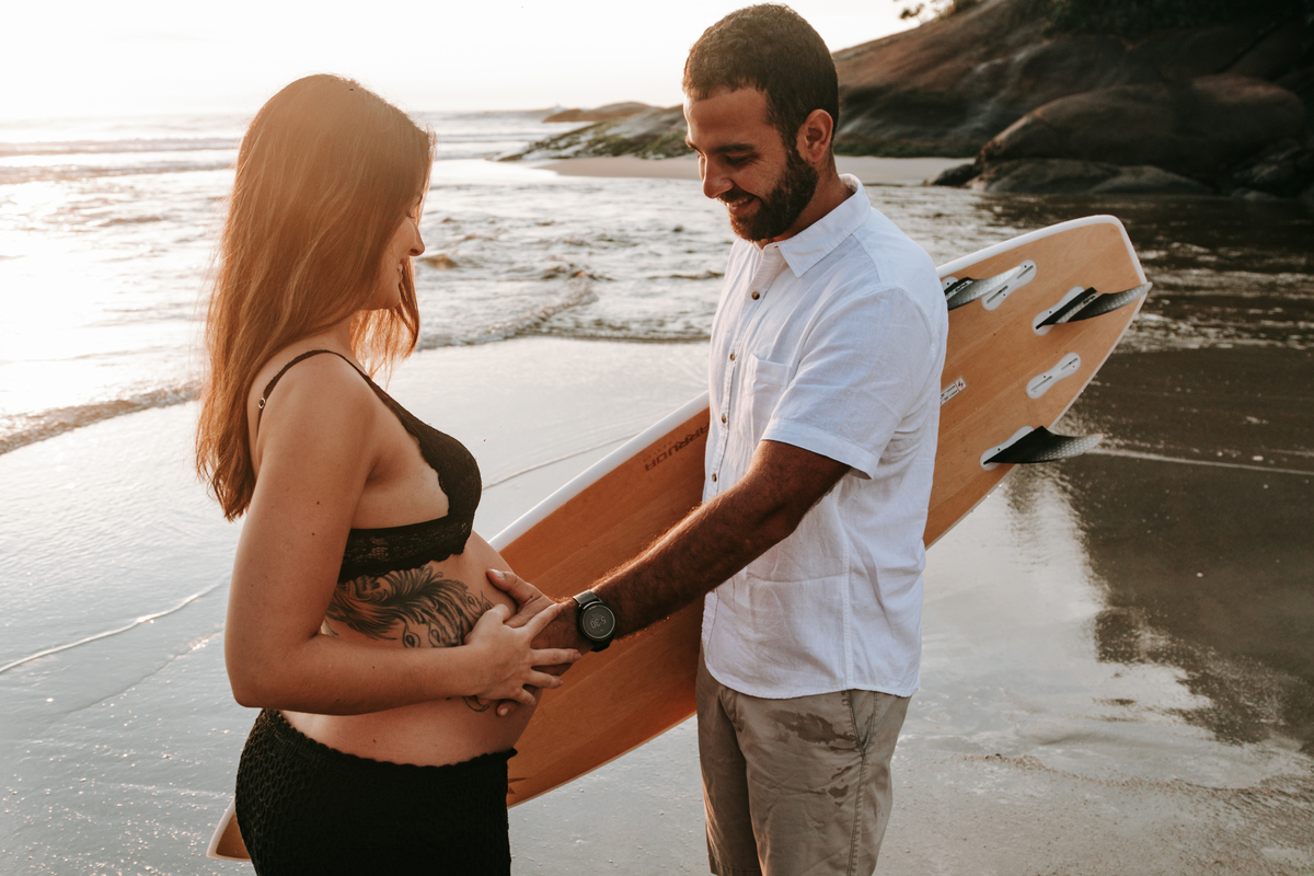 A Julia e o André escolheram a praia de Itamambuca para registrar a espera do Matteo. Ele surfa e ela adora a praia, o que resultou em fotografias únicas para o legado dessa família que está apenas começando.