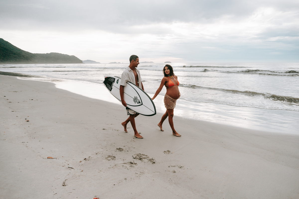 A Isabella e o Hizunome são um casal de surfistas aqui de Ubatuba. A praia de Itamambuca foi o local perfeito para registrar a esepera da Helena e que, além de guardar momentos especiais para o casal, respira o surf.